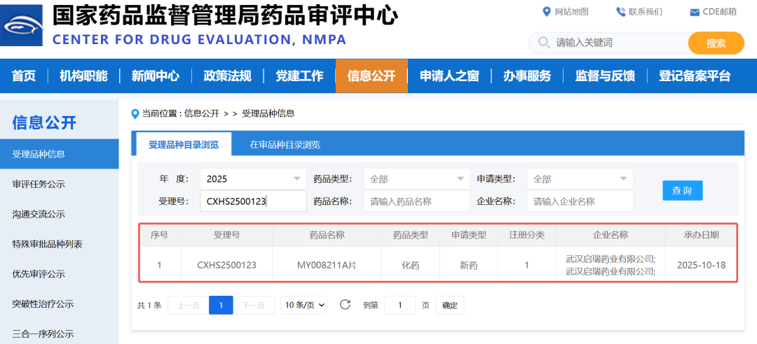 2025年10月15日,武汉朗来科技发展有限公司(以下简称“朗来科技”)自主研发的化学药品1类创新药MY008211A片,结束拟优先审评品种公示期,被国家药品监督管理局药品审评中心(CDE)正式纳入优先审评品种名单,用于治疗既往未接受过补体抑制剂治疗的阵发性睡眠性血红蛋白尿症(PNH)成人患者。同时,此品种的新药上市许可申请(NDA)已于2025年10月17日被CDE成功受理,进入注册审评阶段。